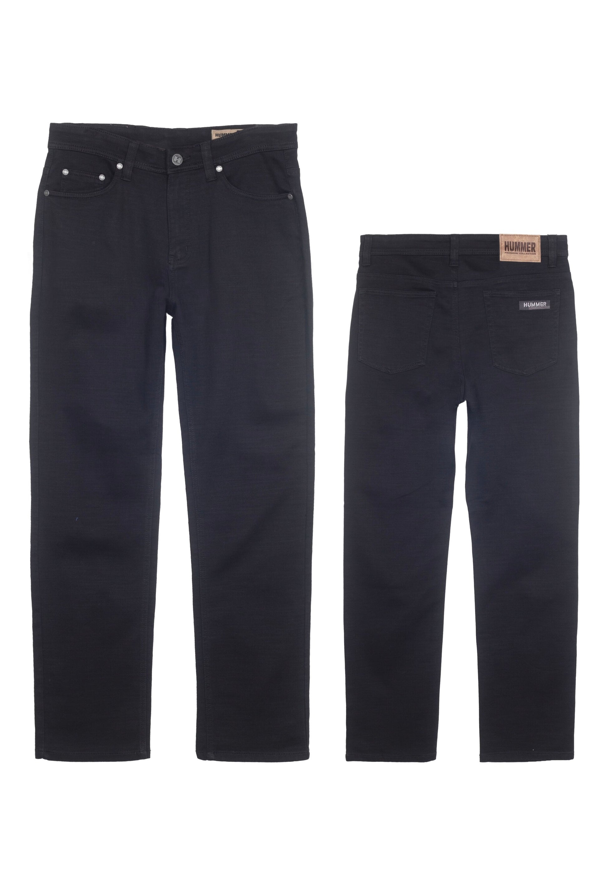 Hummer jeans long pants with plain colour design. It features in embossed at button, 2 side pocket, 1 coin pocket, back pocket with embroidery design, smooth zip, genuine leather patch, label patch and belt loop.